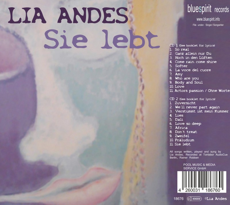 Das Doppelalbum «Sie lebt» ist am 29. Mai 2015 erschienen. Lia Andes singt ihre eigenen Kompositionen und begleitet sich am Klavier.